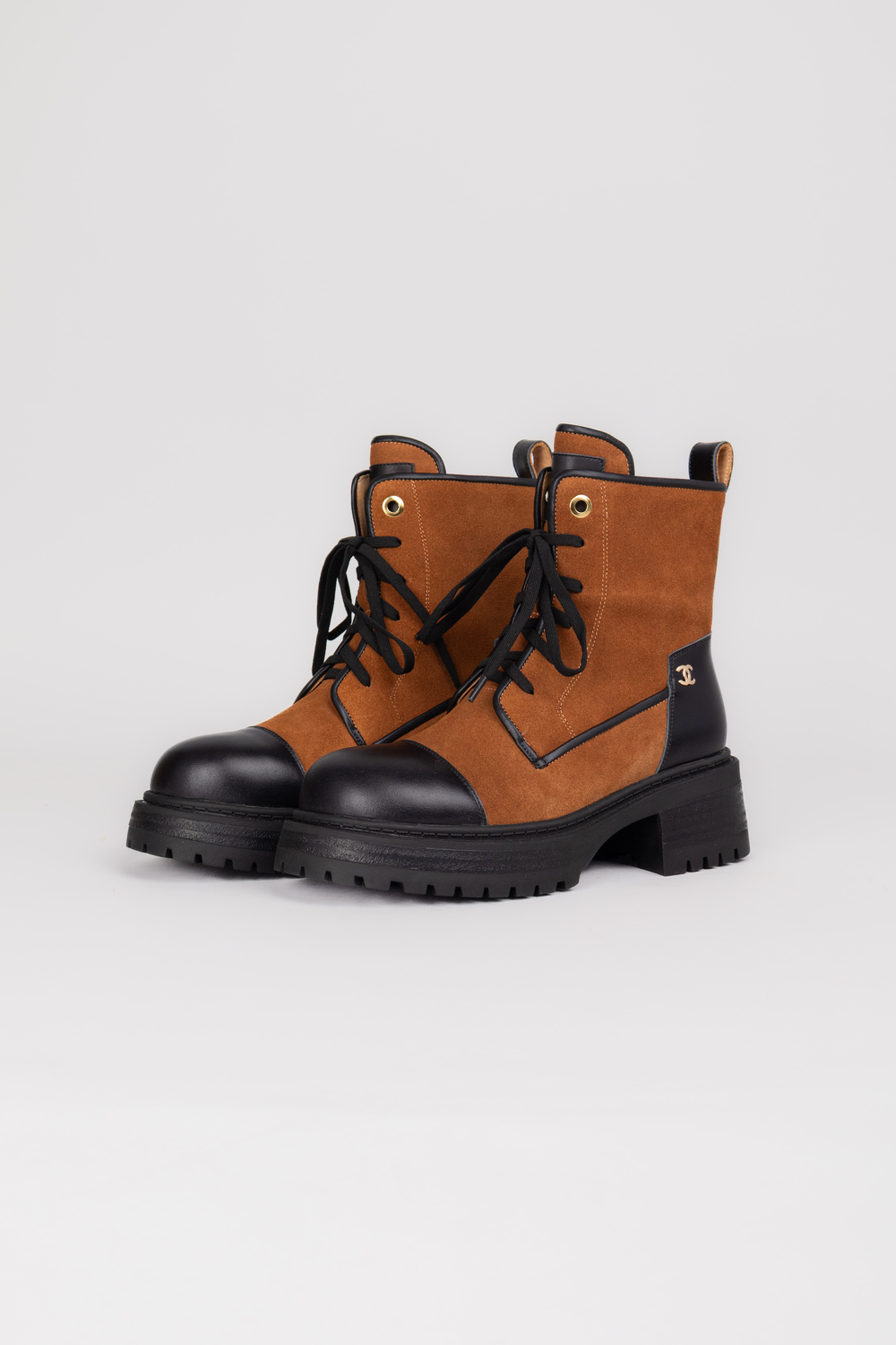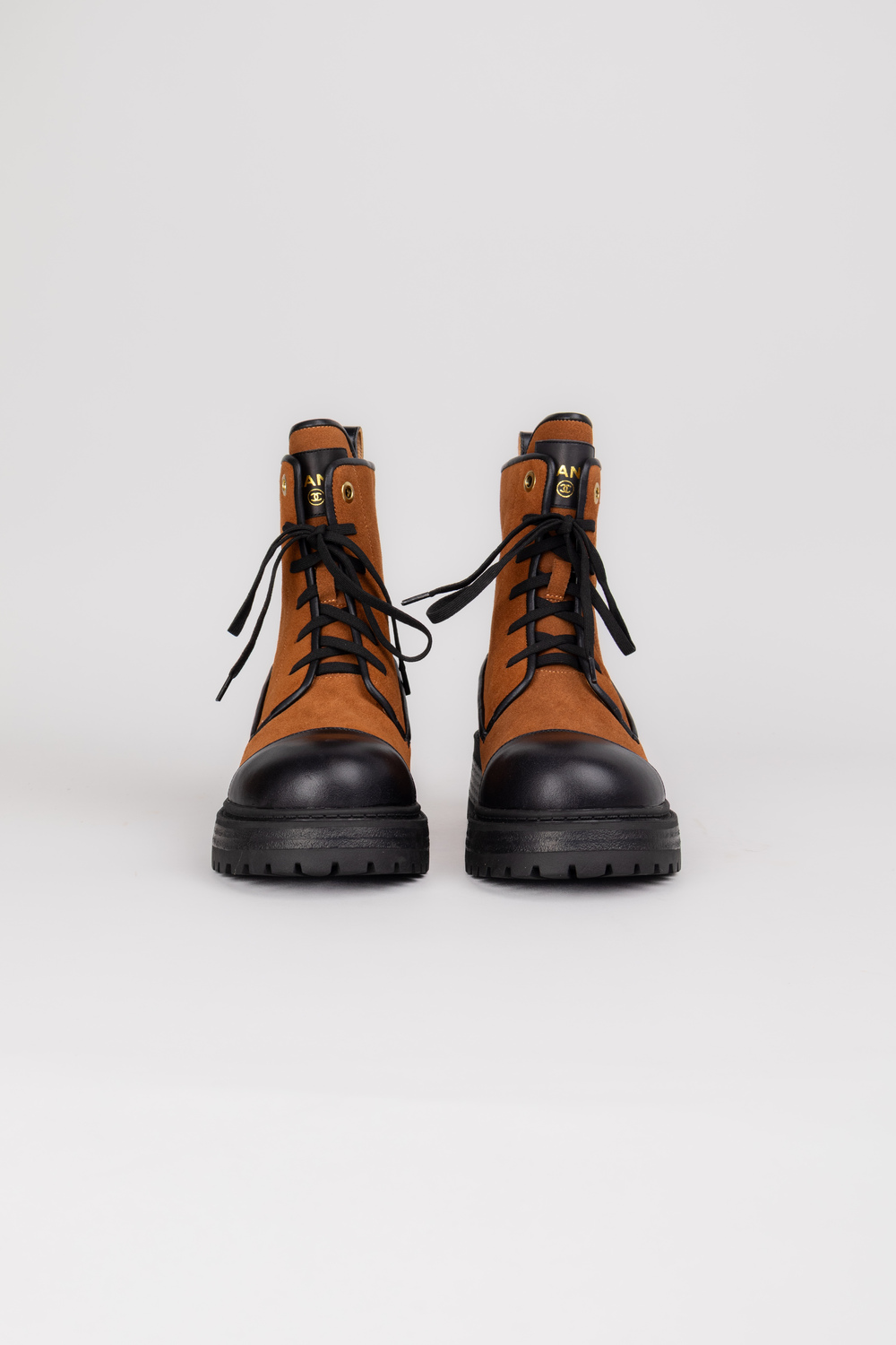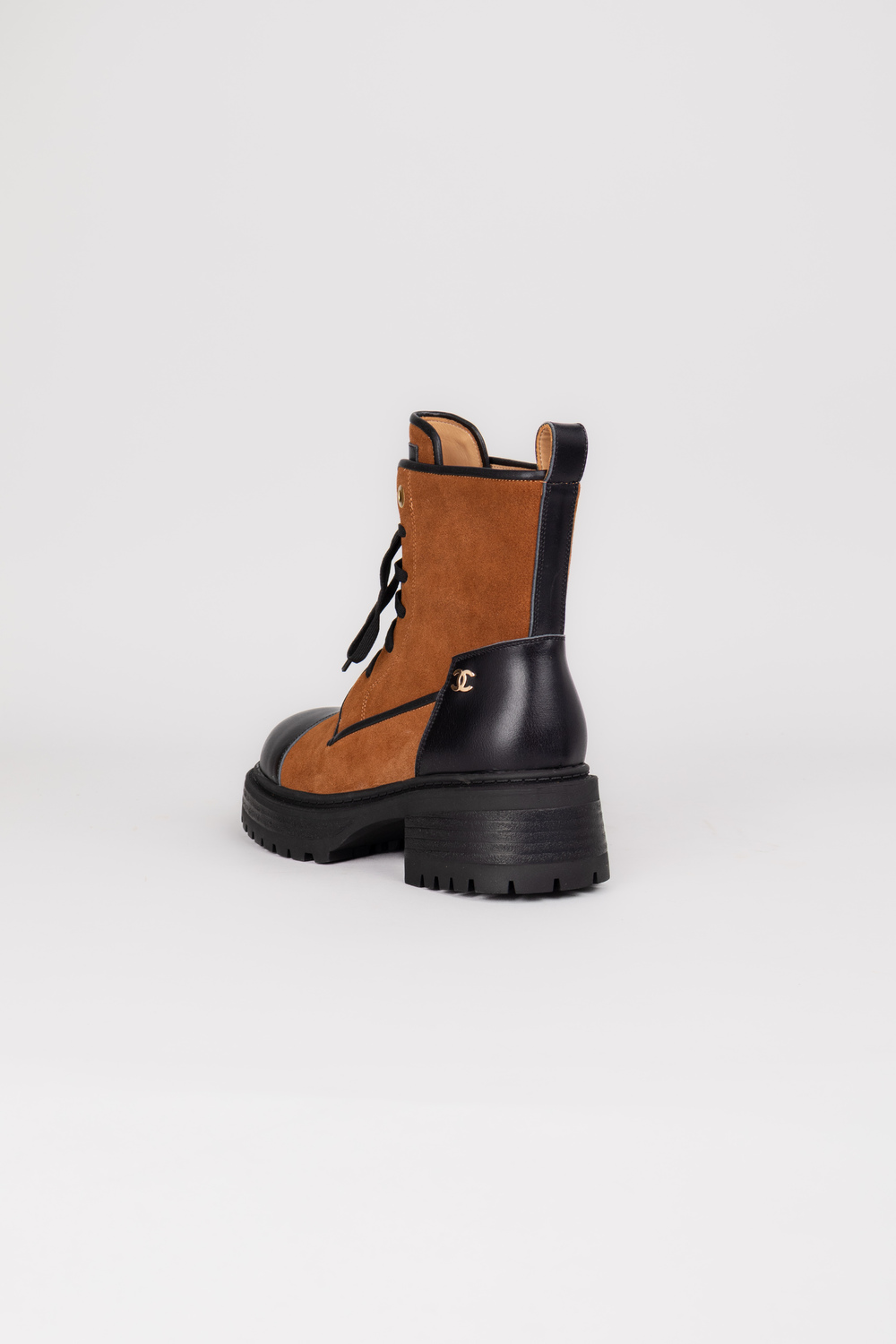 Стильні черевики виконані з поєднання коричневої замші та чорної шкіри — вибір для тих, хто цінує комфорт і розкіш у кожній деталі. Модель прикрашена золотим логотипом, що додає образу вишуканості, а чорна шнурівка забезпечує ідеальну посадку по нозі. Таке поєднання матеріалів і кольорів створює елегантний контраст, який пасує як до класичного, так і до кежуал стилю. Купити можна як в Тернополі так і в Ужгороді.