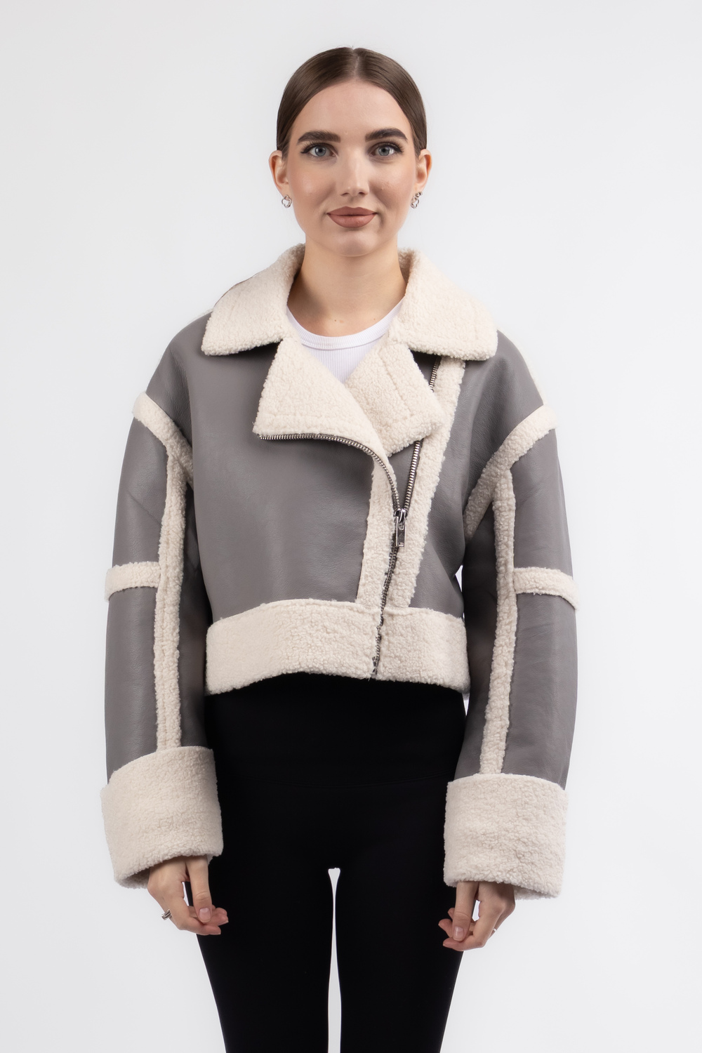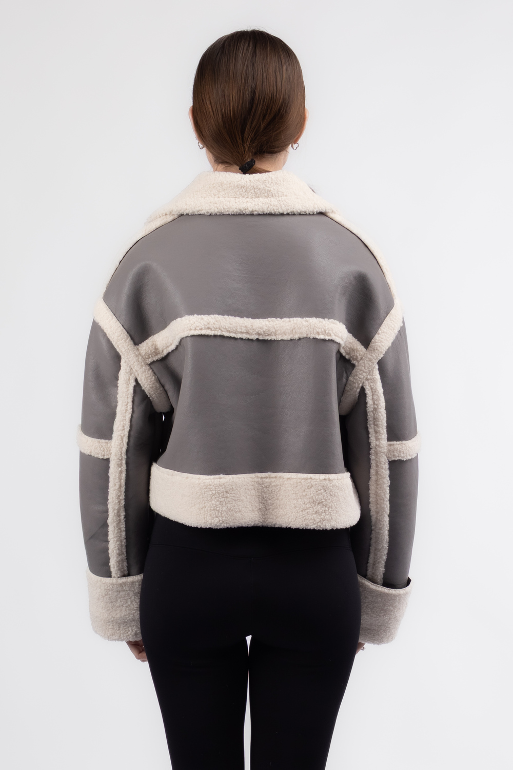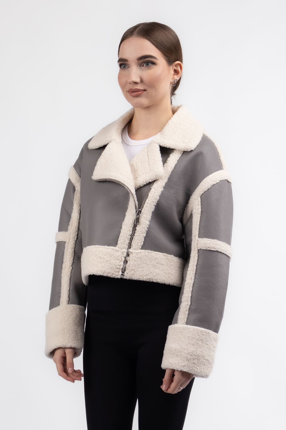 Дублянка біле хутро біла строчка сірий еко-дублерін 037442 Дублянка біле хутро біла строчка сірий еко-дублерін 037442 Дублянка біле хутро біла строчка сірий еко-дублерін 037442