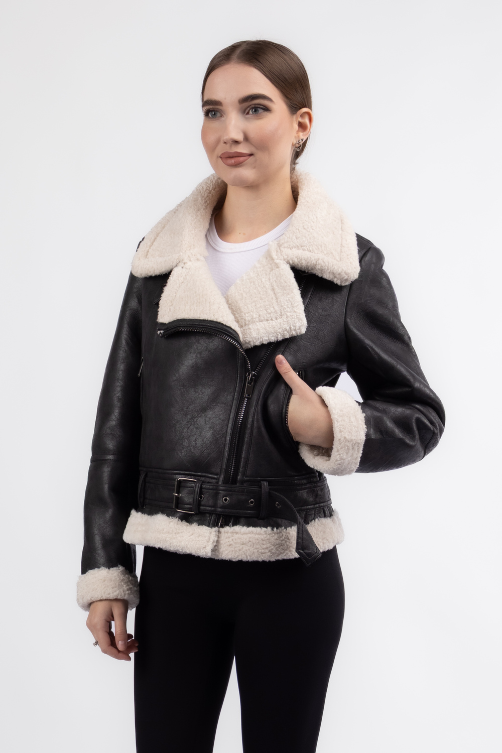 Дублянка біле хутро чорний еко-дублерін 037440 Дублянка біле хутро чорний еко-дублерін 037440 Дублянка біле хутро чорний еко-дублерін 037440