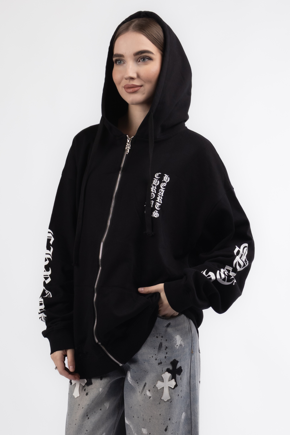 Кофта капюшон застібка біле лого горизонтальне чорний котон 037526