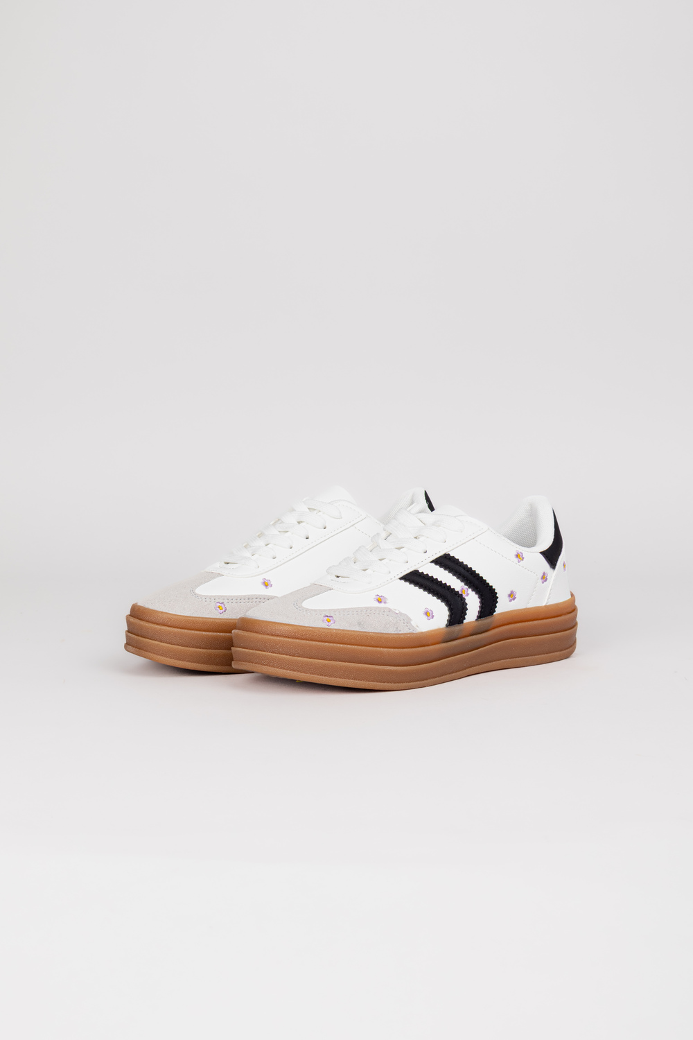 Кросівки 037551 з квітковим дизайном створені для тих, хто цінує яскравість та комфорт у щоденному стилі. Чорні квіти зі стильними сірими вставками вдало поєднані з білою еко-шкірою, що надає моделі свіжого та сучасного вигляду. Такий дизайн легко поєднується з повсякденними образами, підкреслюючи індивідуальність власника. Ці кросівки стануть акцентом у гардеробі, додаючи енергії кожному кроку. Купити кросівки як у Кропивницькому так і в Дніпрі можна просто зараз.