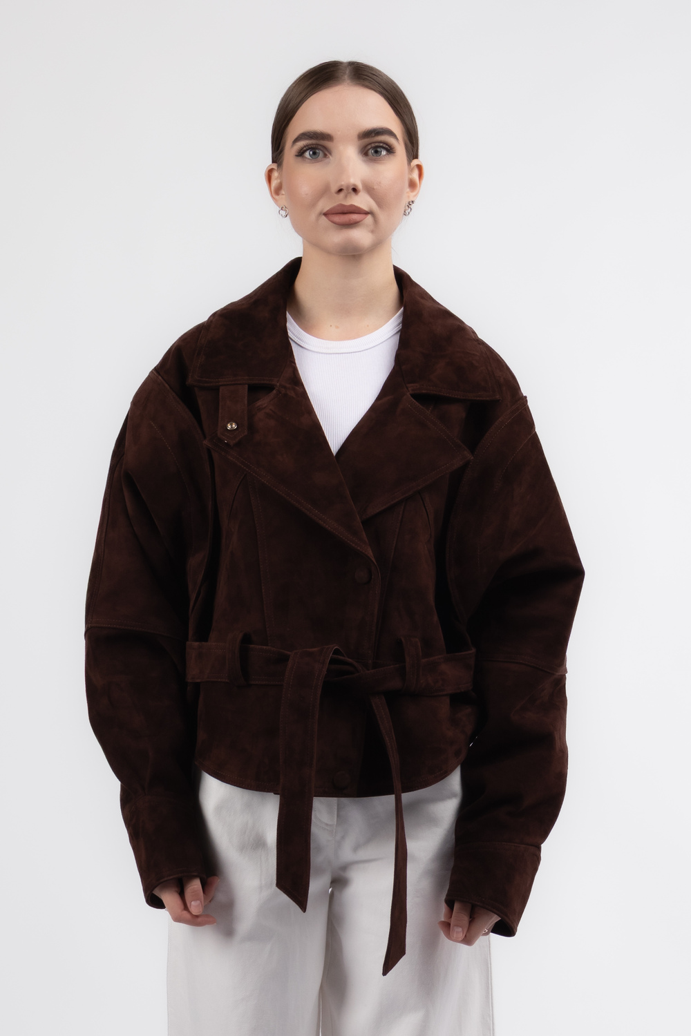 Куртка гудзики пояс коричневий замш 037560 Куртка гудзики пояс коричневий замш 037560 Куртка гудзики пояс коричневий замш 037560