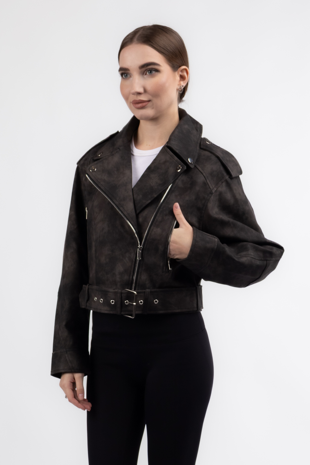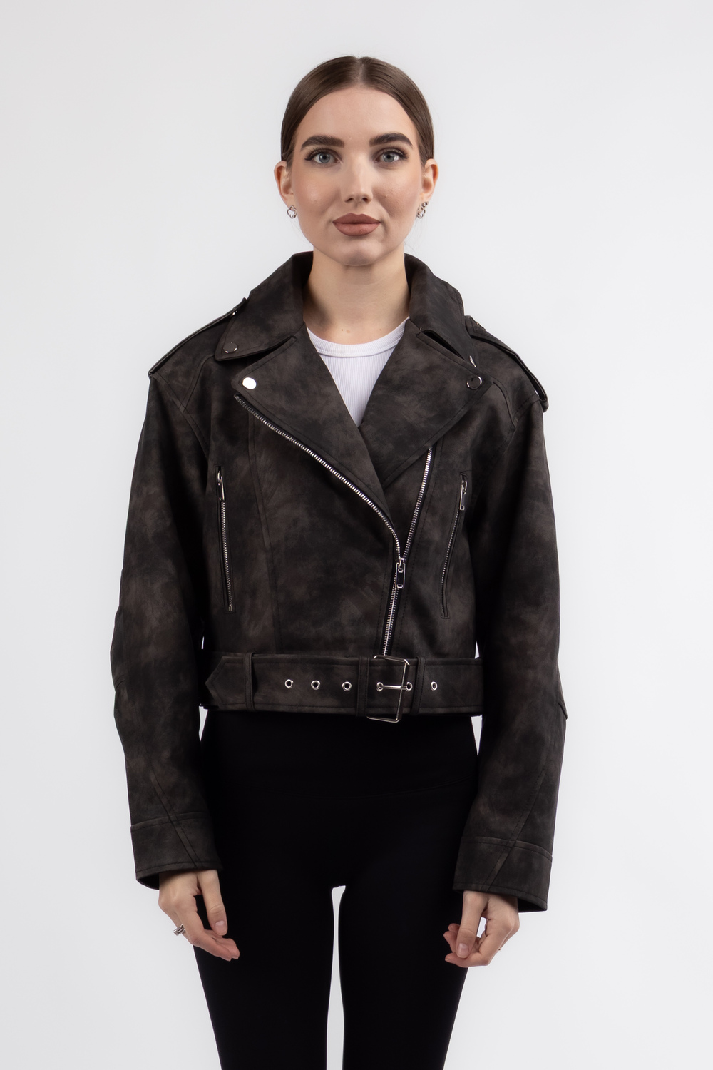 Стильна коротка куртка в чорних відтінках привертає увагу витонченим поєднанням еко-шкіри та сучасного дизайну. Ремінець додає образу завершеності, підкреслюючи талію та створюючи чіткі силуетні лінії. Ідеальний варіант для міських прогулянок або вечірніх виходів, ця куртка легко поєднується з джинсами, спідницями та ботильйонами, даруючи комфорт і модний вигляд одночасно. Купити як в Чернівцях так і в Чернігові можна прямо зараз, щоб поповнити гардероб трендовою річчю сезону.