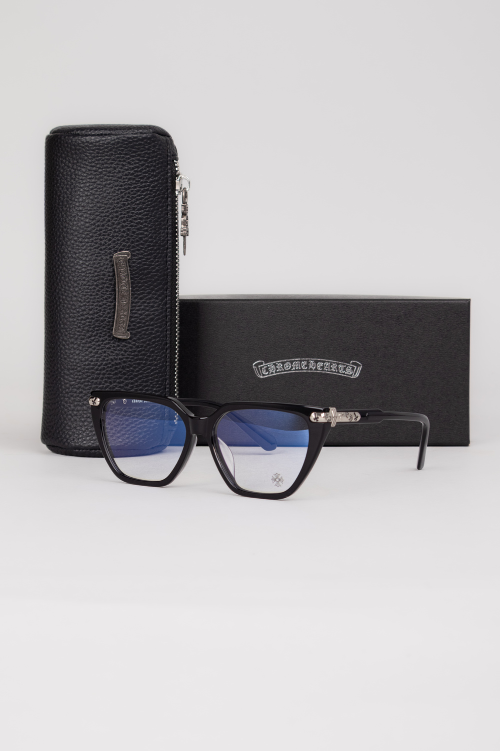 Окуляри прозора лінза чорна оправа срібне лого 037568