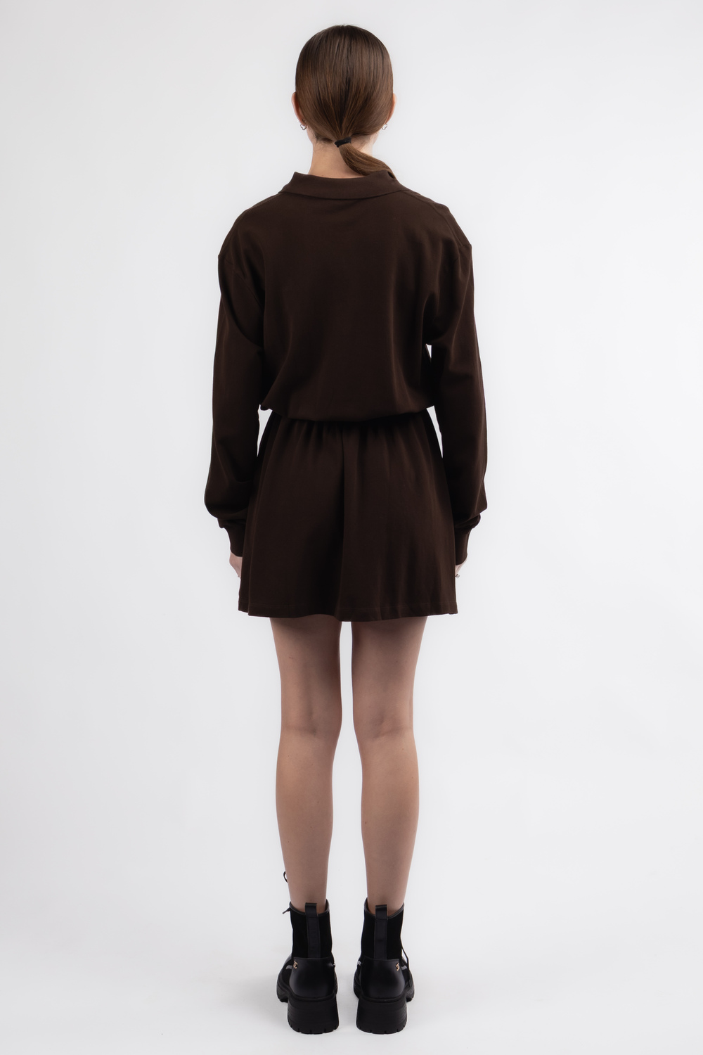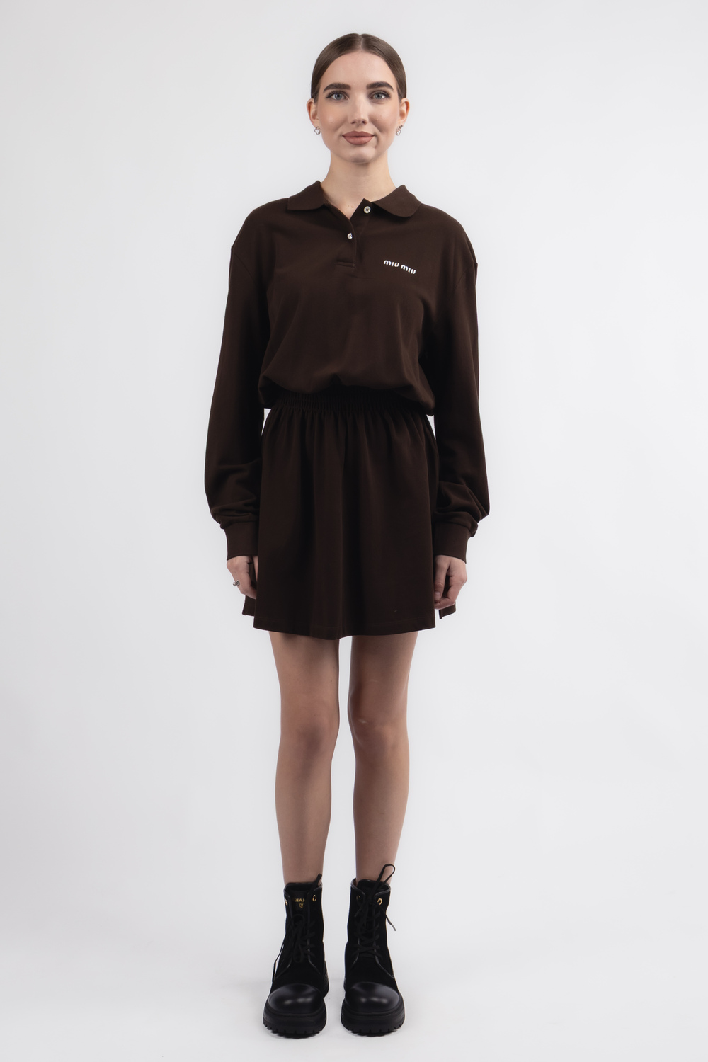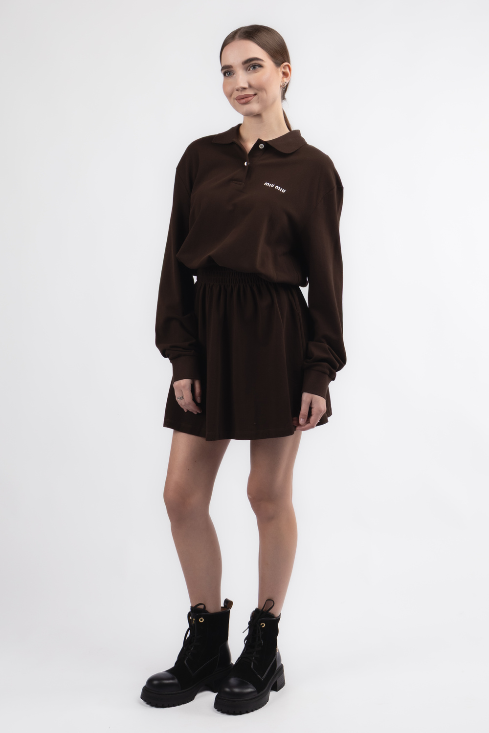 Цей стильний костюм вражає своєю елегантністю та неповторним дизайном. Довгі рукави створюють відчуття комфорту та затишку, а акуратний комірець додає витонченості образу. Біле лого гармонійно контрастує з коричневим коттоном, підкреслюючи сучасний стиль та легку грайливість. Ідеальний варіант для щоденного носіння та особливих подій, який легко поєднується з улюбленими аксесуарами. Купити можна як у Львові так і в Ужгороді.