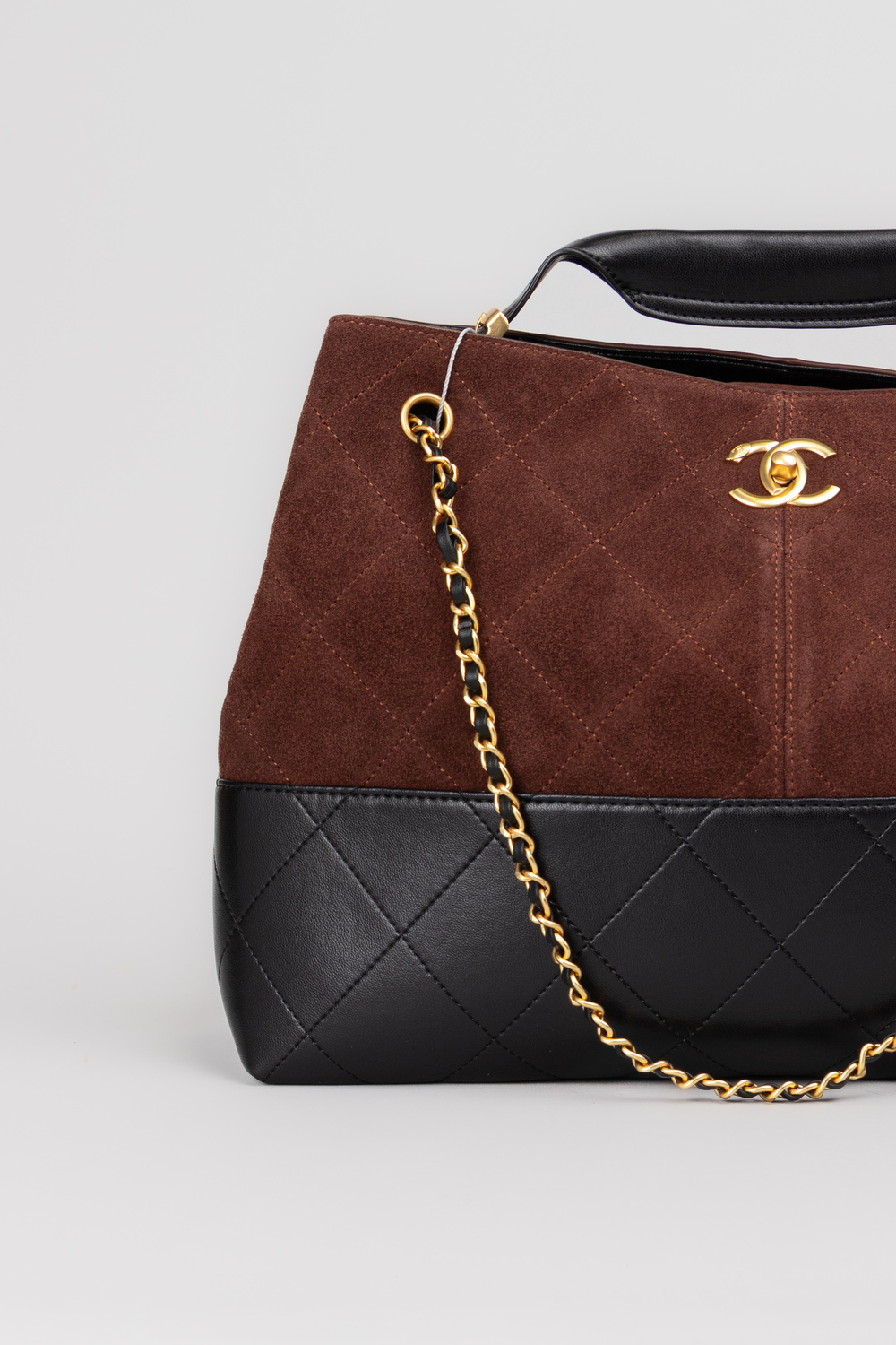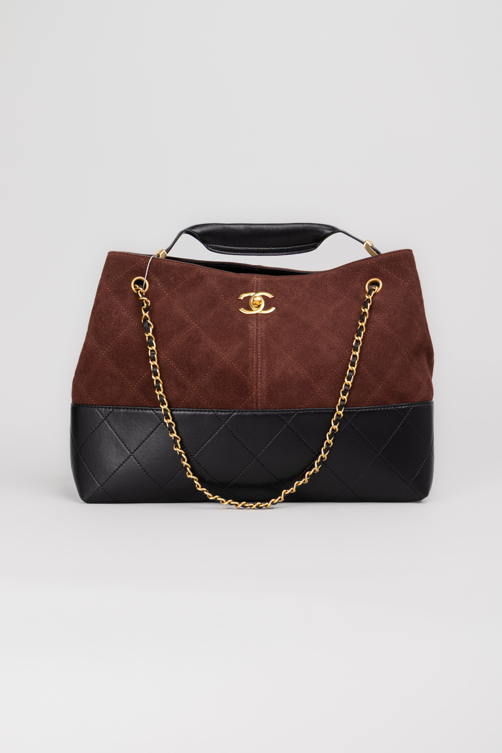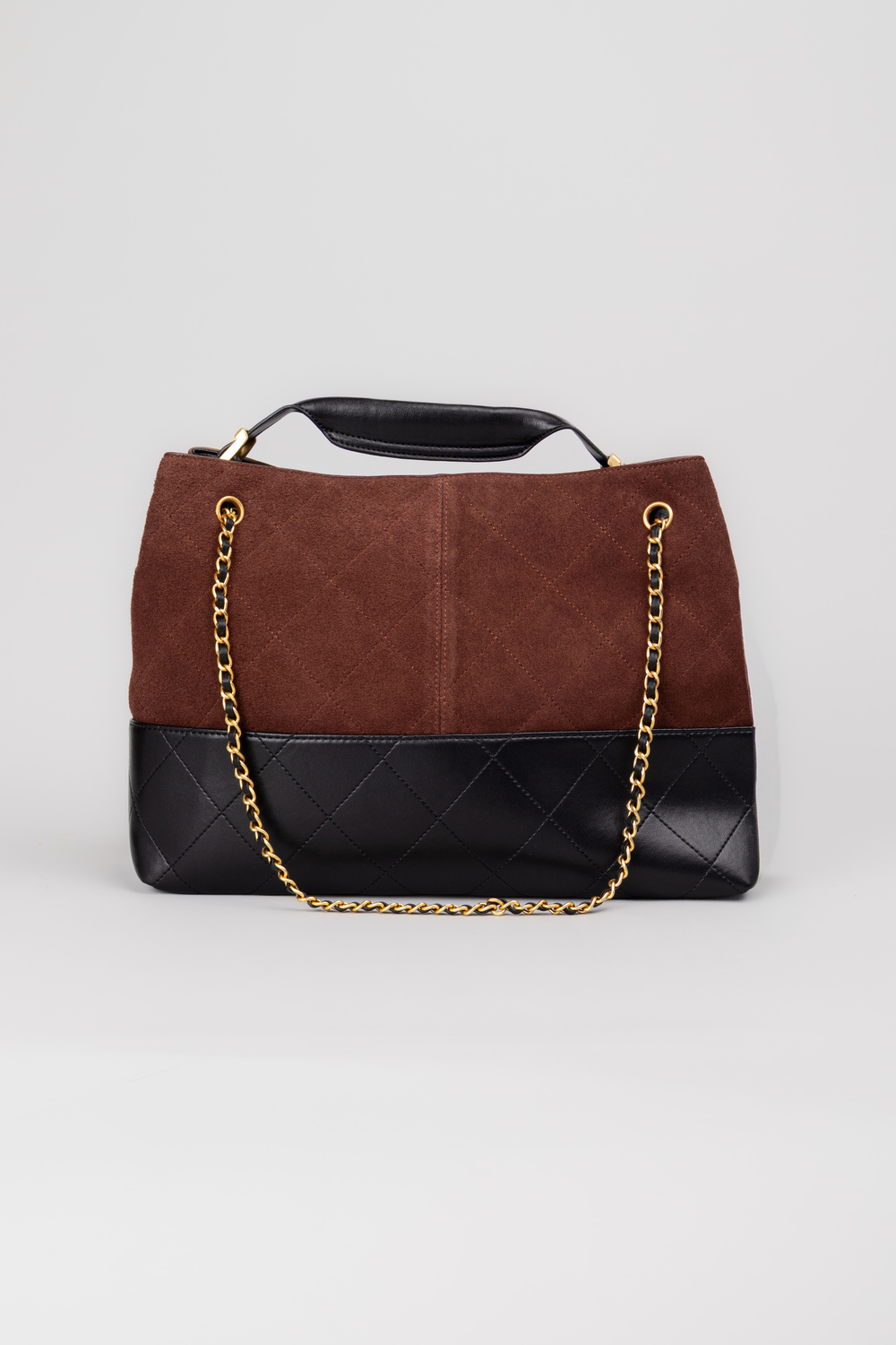 Стильна велика сумка з вишуканим золотим логотипом. Широка та містка, вона поєднує в собі елегантність коричнево-чорних відтінків. Виготовлена з комбінації м’якої замші та гладкої шкіри, що надає виробу особливого шарму і текстурної різноманітності. Зручна форма дозволяє легко вмістити всі необхідні речі, а міцні ручки забезпечують комфорт у носінні. Ідеальний аксесуар для створення вишуканого образу як на кожен день, так і для особливих випадків. Купити можна як у Львові так і в Ужгороді.