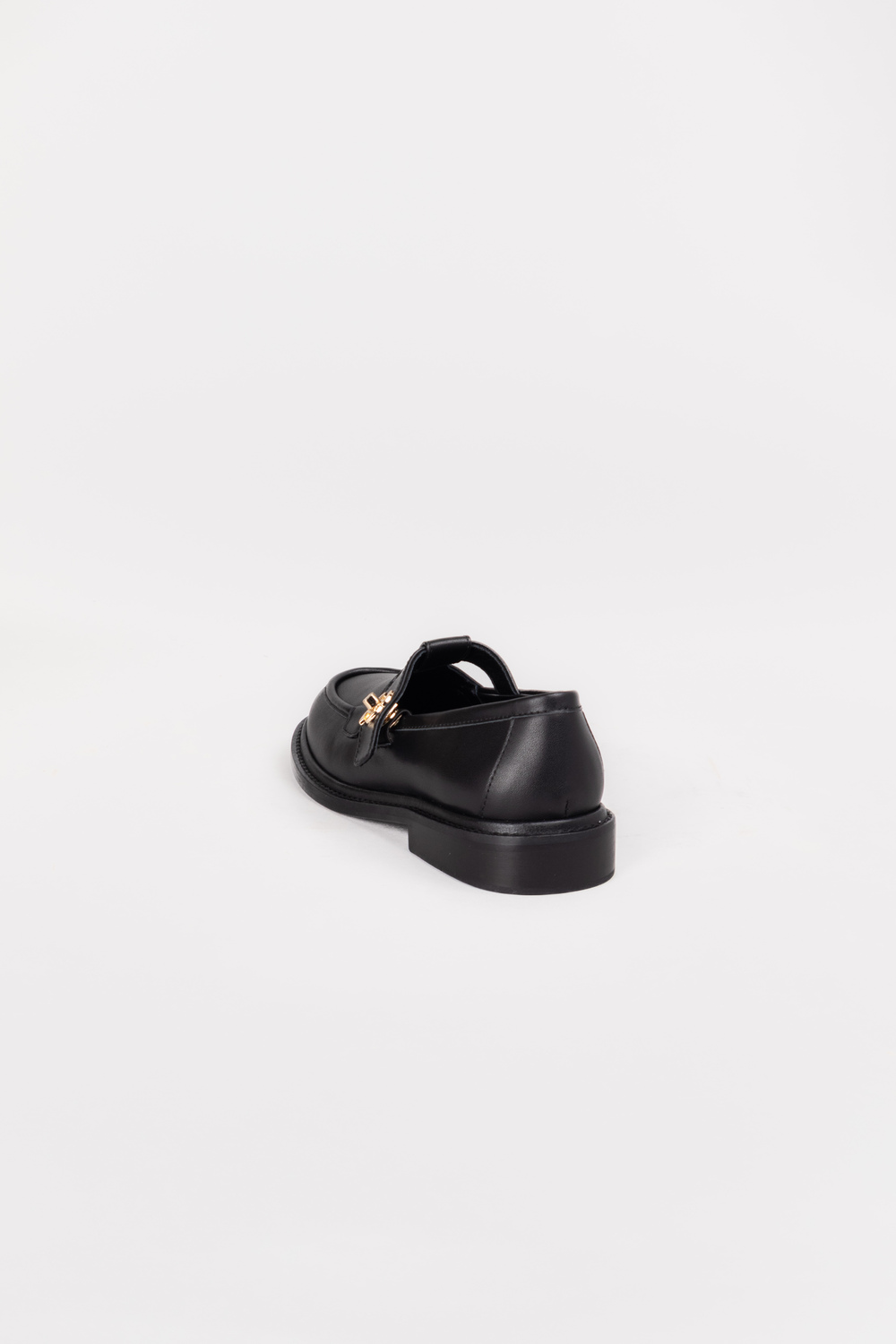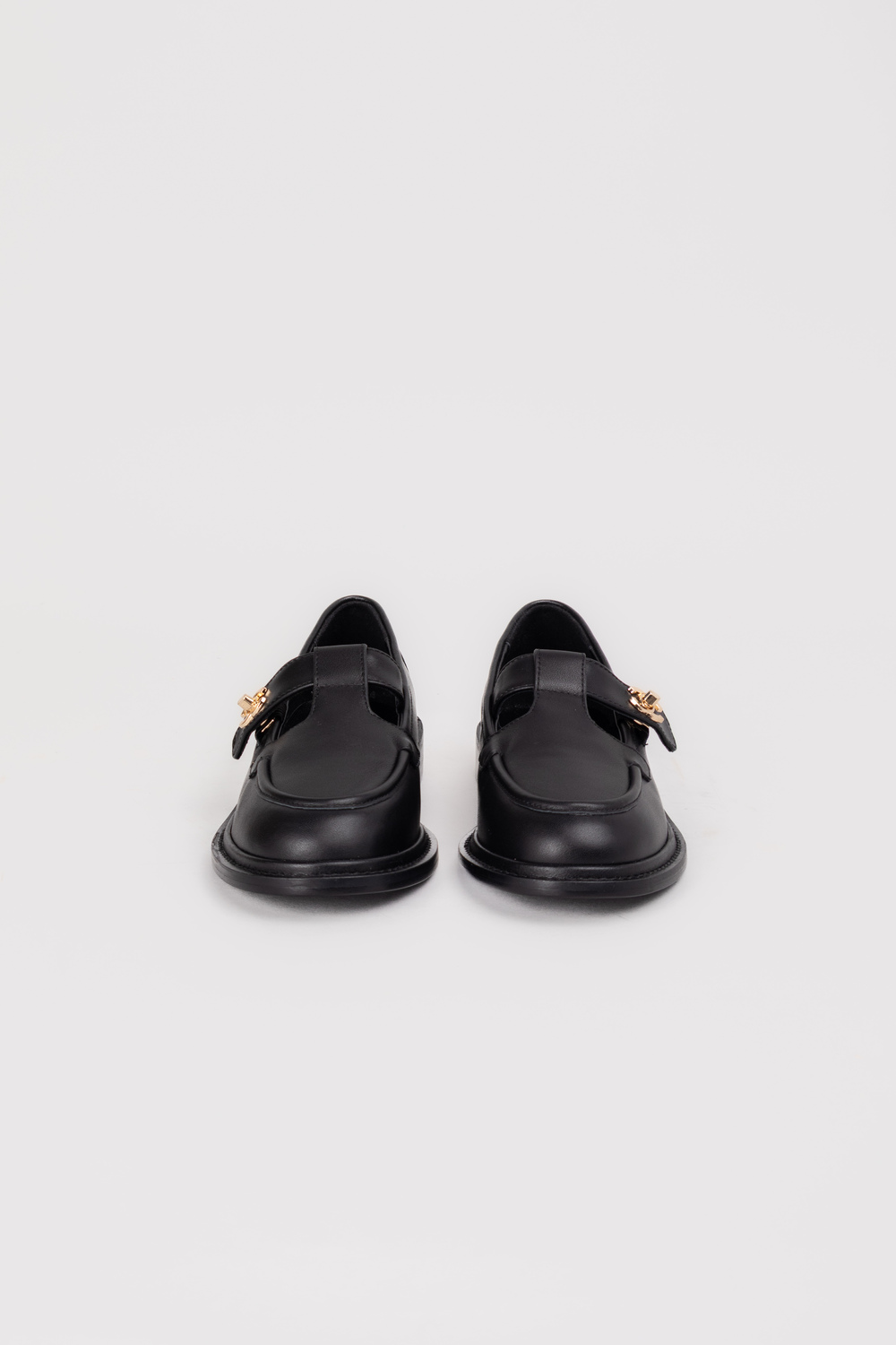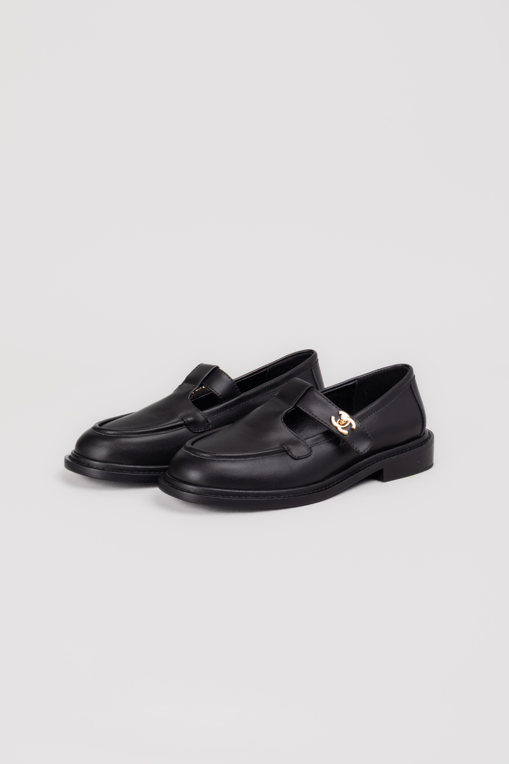 Стильні туфлі з чорної шкіри з акцентом у вигляді витонченого золотого лого та зручною застібкою — ідеальний вибір для образів на кожен день та особливі події. М’яка шкіра комфортно сідає по нозі, підкреслюючи жіночність і впевненість. Гармонійне поєднання класичної форми та елегантного декору робить цю модель універсальною — туфлі легко поєднуються з діловим костюмом, сукнею чи джинсами. Шукаєте взуття, яке додасть образу статусності та смаку? Саме ця пара стане вдалим акцентом. Купити можна як у Львові так і в Хмельницькому.